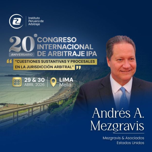 XX Congreso Internacional de Arbitraje IPA «Cuestiones Sustantivas y Procesales en la Jurisdicción Arbitral» 29 y 30 de abril de 2026, Lima – Perú.